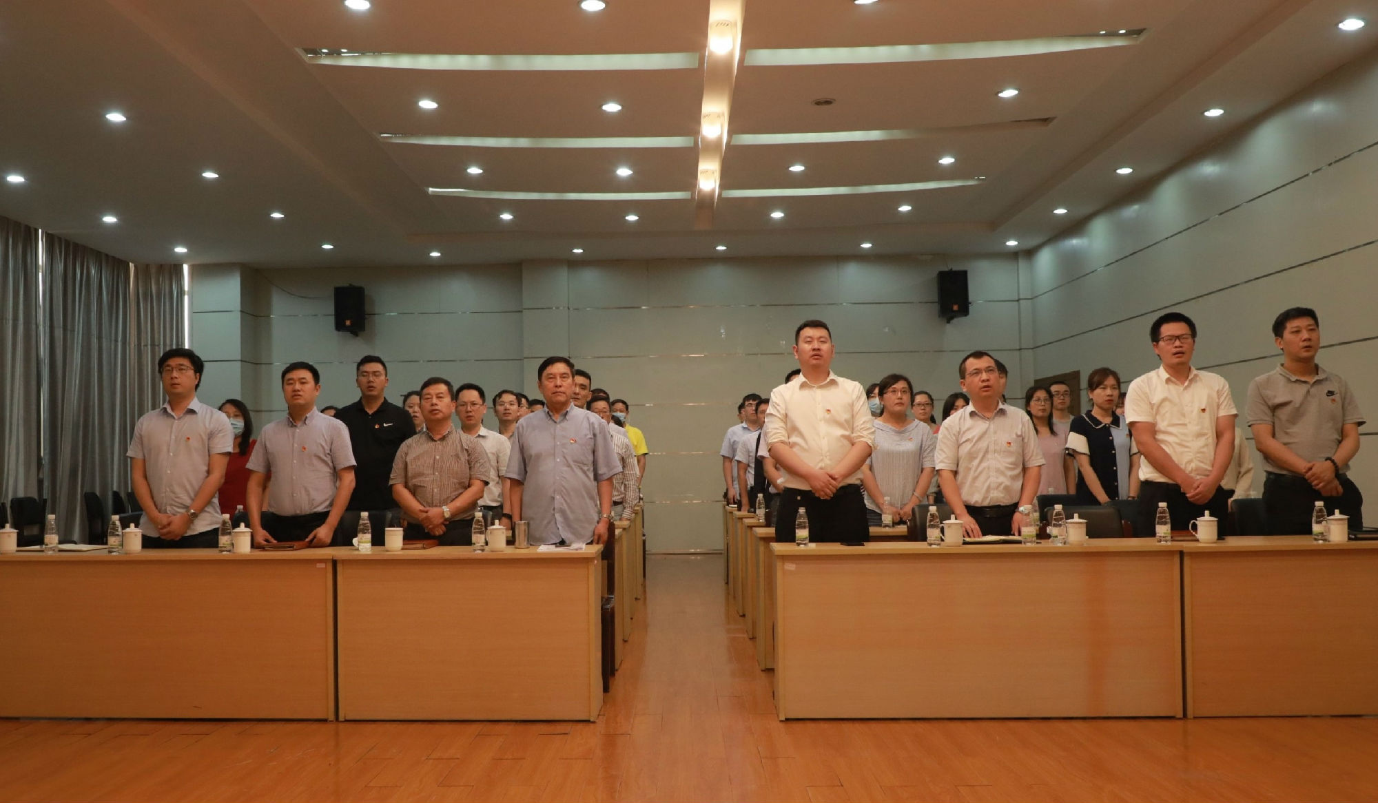 2020年6月28日下午,中共南大環保黨總支召開慶祝建黨99周年全體黨員大會,回顧黨的光輝歷程,發揮黨的光榮傳統。公司全體黨員、入黨積極分子、中高層干部參加會議。大會在莊嚴的國歌聲中拉開帷幕。